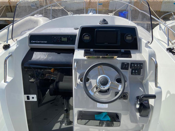 Lancha nueva de fácil manejo, muy espaciosa, buena navegación, muy segura y grandes prestaciones. Amplio solarium en proa y pañol para guardar el equipaje. Parasol y ducha de agua dulce en popa. Equipo de música. Botiquín primeros auxilios y equipo de seguridad y salvamento. Ideal para descubrir los mejores rincones de la Costa Brava y visitar pequeñas calas y el parque natural de las Islas Medas. Apta para deportes náuticos (sky, donut, wake….)